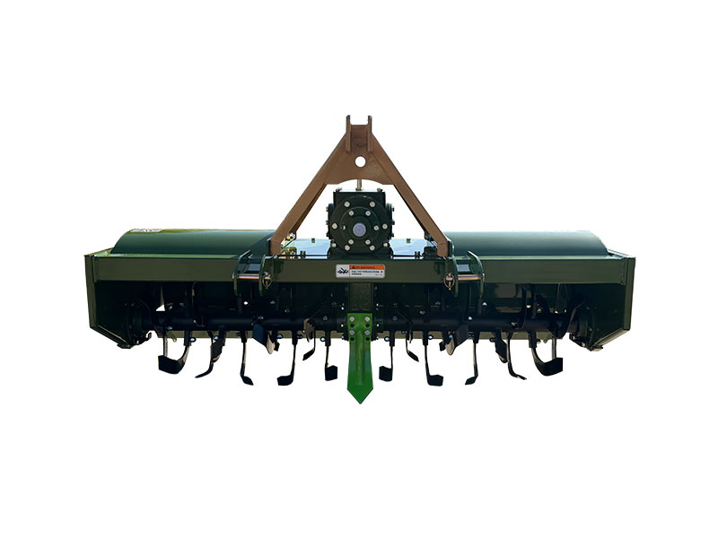 由拖拉機動驅(qū)動的耕整地作業(yè)機具,利用刀軸上旋耕刀的旋轉(zhuǎn)運動和機具前進的復(fù)合運動對土地進行旋耕碎土作業(yè),能一次完成耕、耙、平的作業(yè)。具有旱田碎土充分,地面平整,水田泥爛成漿,適應(yīng)性廣、作業(yè)效率高等優(yōu)點。