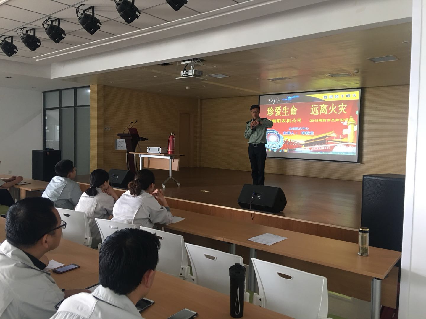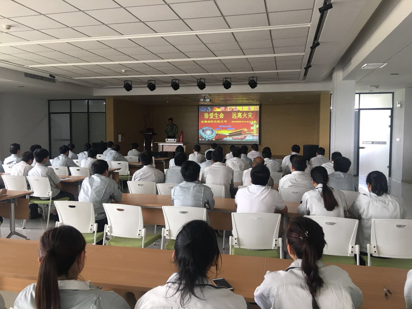 4月29日是,在節(jié)前最后一天,亞澳農(nóng)機(jī)全體員工在二樓多功能廳進(jìn)行了“珍愛生命,遠(yuǎn)離火災(zāi)”為主題的消防安全培訓(xùn),
