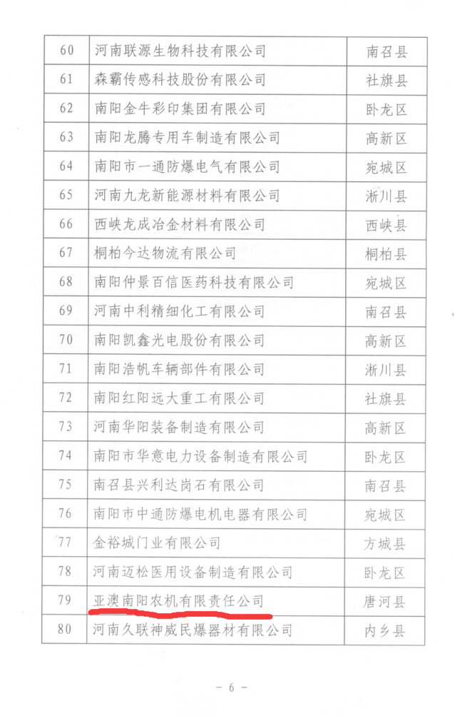 為深入實(shí)施創(chuàng)新驅(qū)動(dòng)發(fā)展和“兩輪兩翼”發(fā)展戰(zhàn)略,增強(qiáng)全市企業(yè)自主創(chuàng)新能力和核心競爭力,引領(lǐng)促進(jìn)企業(yè)成為技術(shù)創(chuàng)新主體,按照《南陽市科技創(chuàng)新百強(qiáng)企業(yè)考核評(píng)定辦法》要求,亞澳農(nóng)機(jī)等6家企業(yè)榮獲此榮譽(yù)。