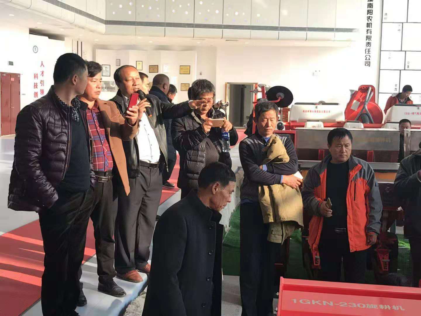 亞澳公司總經(jīng)理助理郭靖和銷售部經(jīng)理王紅衛(wèi)負(fù)責(zé)接待,一行70多人來到大廳,首先郭總給大家介紹了亞澳農(nóng)機(jī)的企業(yè)文化及發(fā)展歷程,并介紹了展廳里所展示的代表性機(jī)具。