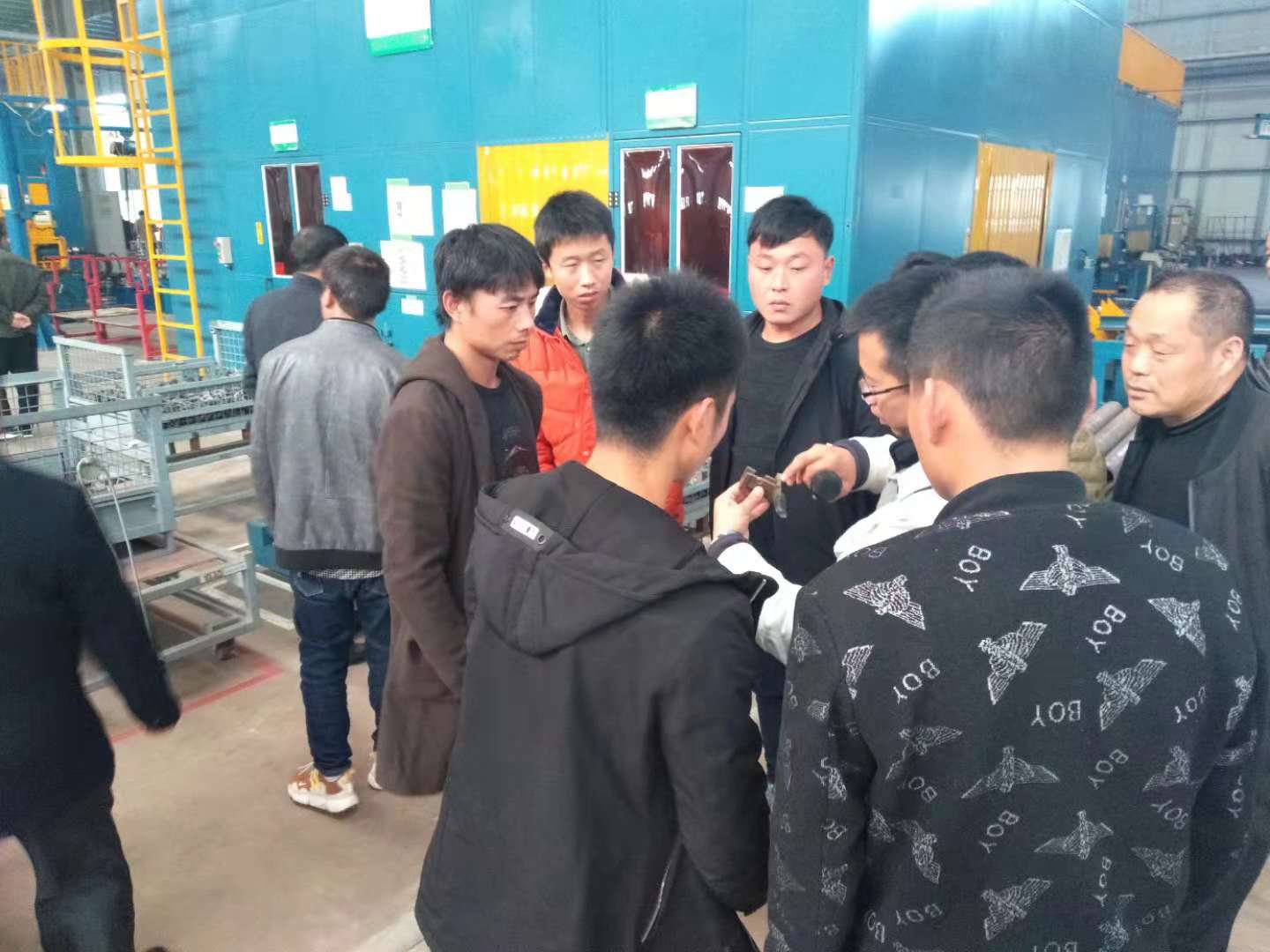 次日上午,公司又安排所有農(nóng)機(jī)合作社來到我們的制造車間,王經(jīng)理給大家實(shí)地講解每一臺(tái)機(jī)具的制造流程及生產(chǎn)工藝。