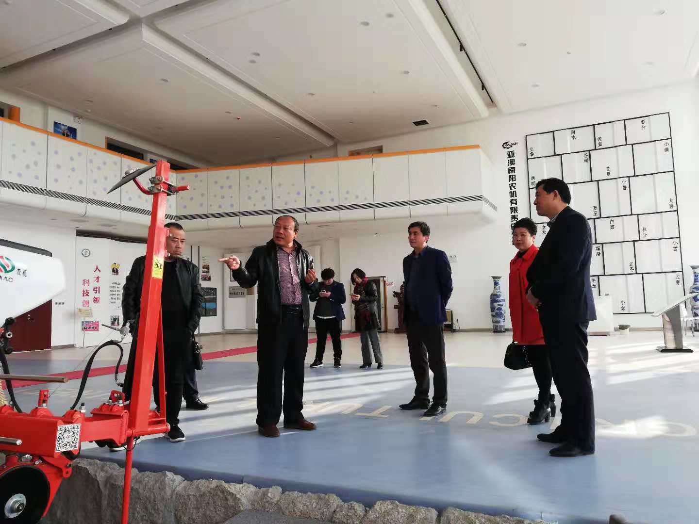 郭總首先向李軍副主席一行介紹了展廳內(nèi)展示的代表性機具,李軍副主席指出,這些機具刷新了我對農(nóng)耕機具的認知。