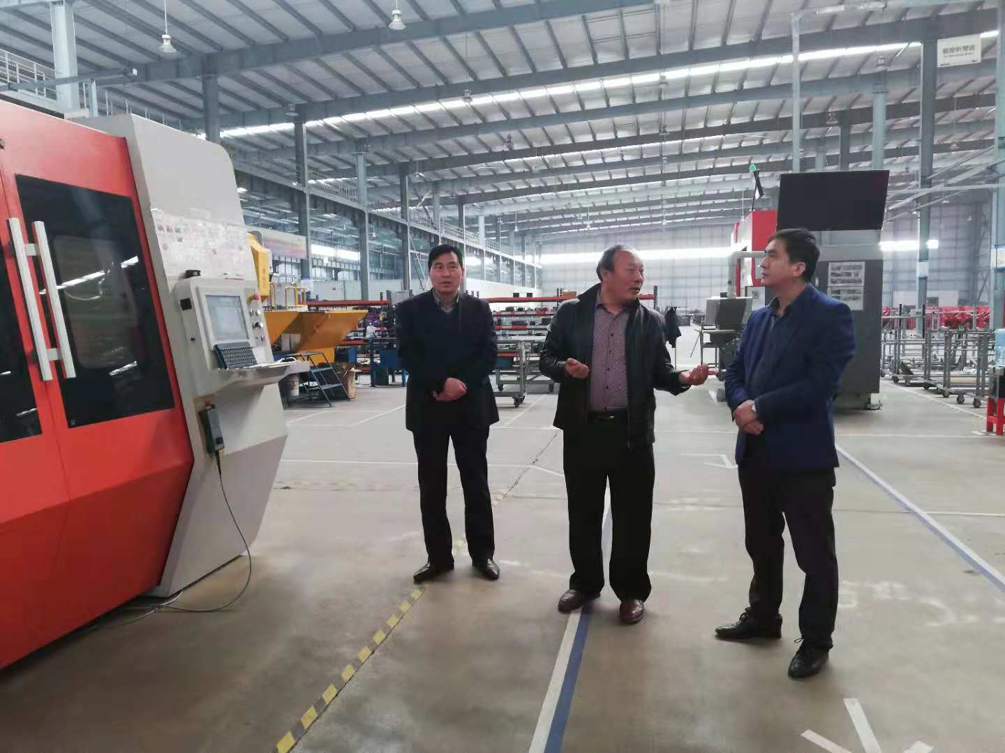 之后調(diào)研組一行又來到鈑金生產(chǎn)線,郭總詳細的講解了激光切割及數(shù)控折彎兩個機組的制造工藝,李軍副主席表示這些硬件設(shè)備顛覆了我們對傳統(tǒng)制造業(yè)的認識,亞澳智能制造的互聯(lián)網(wǎng)+制造理念很超前,對未來企業(yè)的智能制造發(fā)展提供了強大基礎(chǔ)。