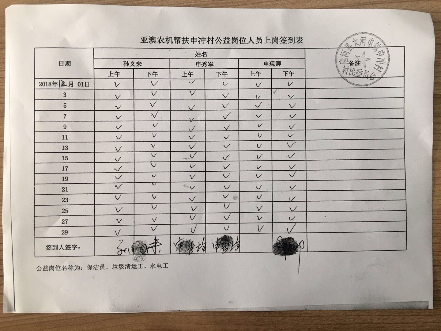 除此之外,我公司聯(lián)合村委會(huì)照顧一些特別貧困但有行動(dòng)能力的老人為村部垃圾清運(yùn)、水電維修、村落清潔等,并為此購(gòu)買公益崗位,每月定期給這些公益崗位發(fā)放工資,以確保他們的正常生活。