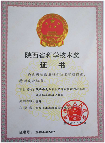 日前,全省科技創(chuàng)新大會暨科學技術獎勵大會在西安隆重召開,省委書記胡和平出席會議并講話,省長劉國中主持會議,會議表彰了2018年度省科學技術獎獲獎項目,并向最高成就獎及一等獎獲獎者頒發(fā)了獎勵證書。亞澳農(nóng)機和西北農(nóng)林科技大學合作研發(fā)的“陜西小麥玉米生產(chǎn)保護性耕作技術模式與配套機械化裝備”項目成果榮獲省科技進步一等獎。