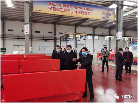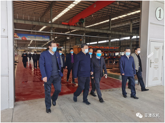 霍好勝一行在亞澳農(nóng)機(jī)調(diào)研與公司總經(jīng)理史炳哲進(jìn)行深入交流,詳細(xì)了解疫情防控、復(fù)工進(jìn)度和遇到的困難等問題,并深入生產(chǎn)區(qū)一線現(xiàn)場(chǎng)查看企業(yè)的生產(chǎn)狀況。