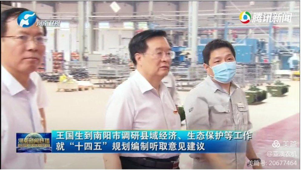 河南省委常委、省委秘書長穆為民陪同調研,亞澳南陽農機總經理史炳哲介紹相關情況!