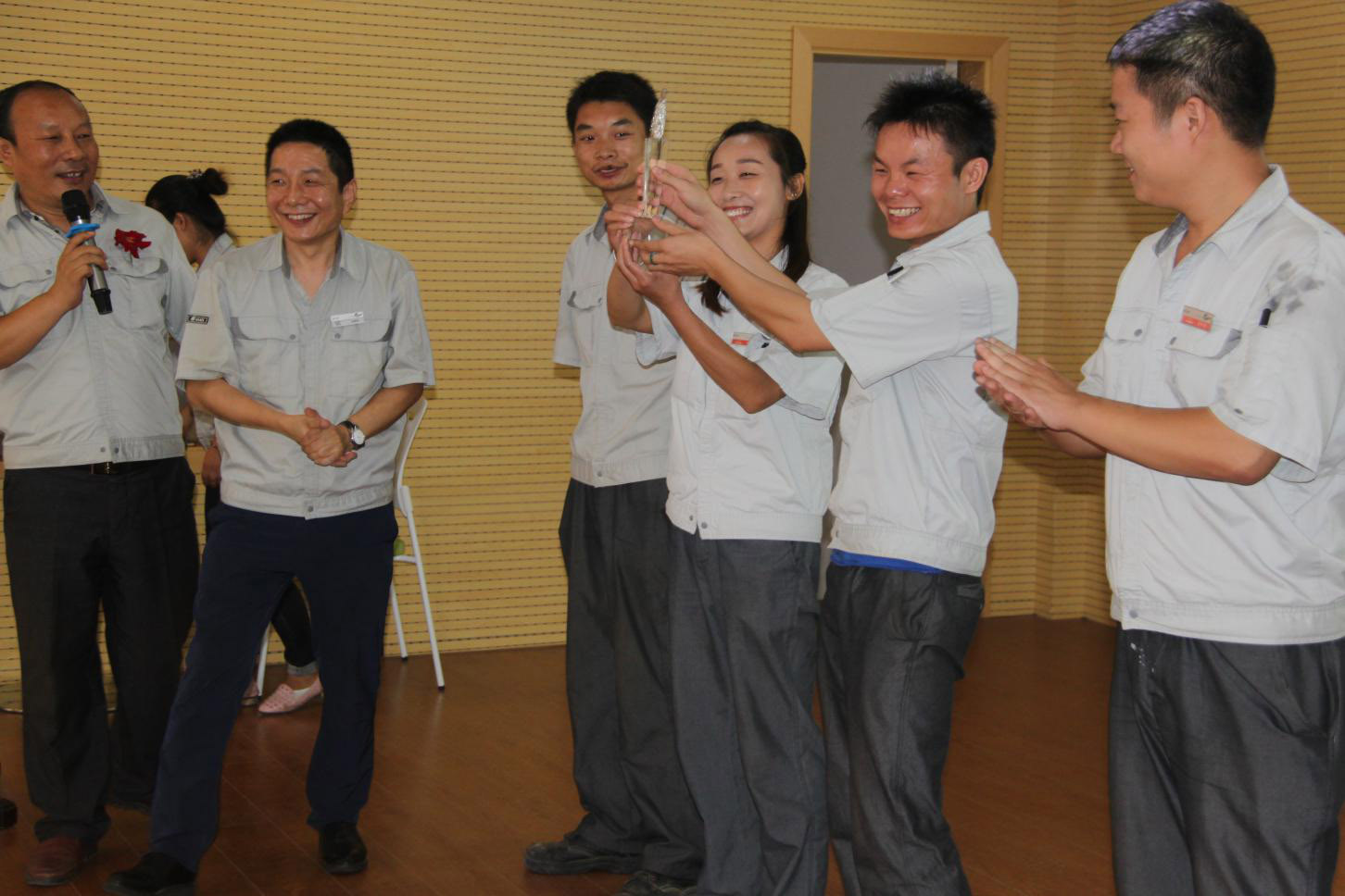 慶典的文藝節(jié)目也十分精彩,各班組盡顯神通,各班組都帶來了精心準(zhǔn)備的節(jié)目,歌曲、相聲、小品、脫口秀。一個(gè)比一個(gè)精彩,表演者的一顰一笑都獲得觀眾的熱烈掌聲,臺(tái)上臺(tái)下齊互動(dòng),現(xiàn)場(chǎng)氣氛一次次地推向了高潮。
