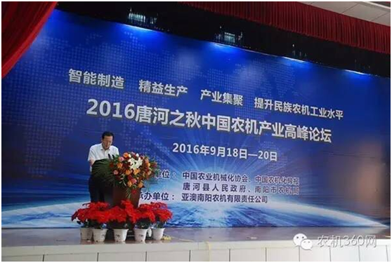 9月20日,由中國(guó)農(nóng)業(yè)機(jī)械化協(xié)會(huì)、《中國(guó)農(nóng)機(jī)化導(dǎo)報(bào)》、河南省唐河縣政府和南陽市農(nóng)機(jī)局共同主辦,亞澳南陽農(nóng)機(jī)有限責(zé)任公司承辦的2016唐河之秋中國(guó)農(nóng)機(jī)產(chǎn)業(yè)高峰論壇在河南省唐河縣舉行。全國(guó)各地農(nóng)機(jī)生產(chǎn)企業(yè)、當(dāng)?shù)亟?jīng)銷商以及媒體代表共200多人參加了此次論壇。
